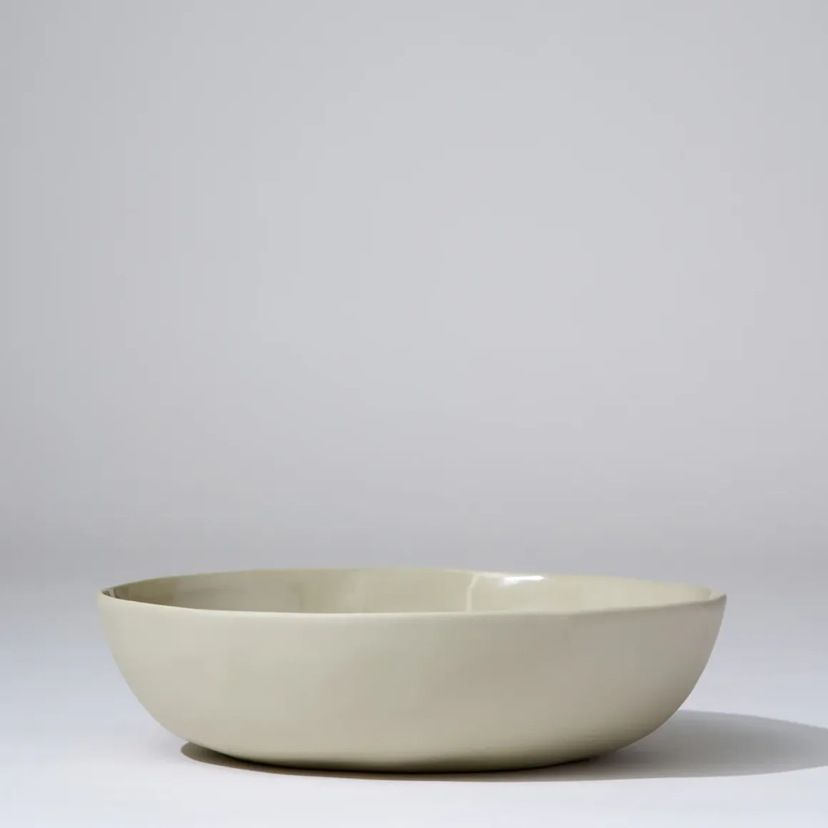 Hand cast ceramic bowl with a subtle irregular shape.