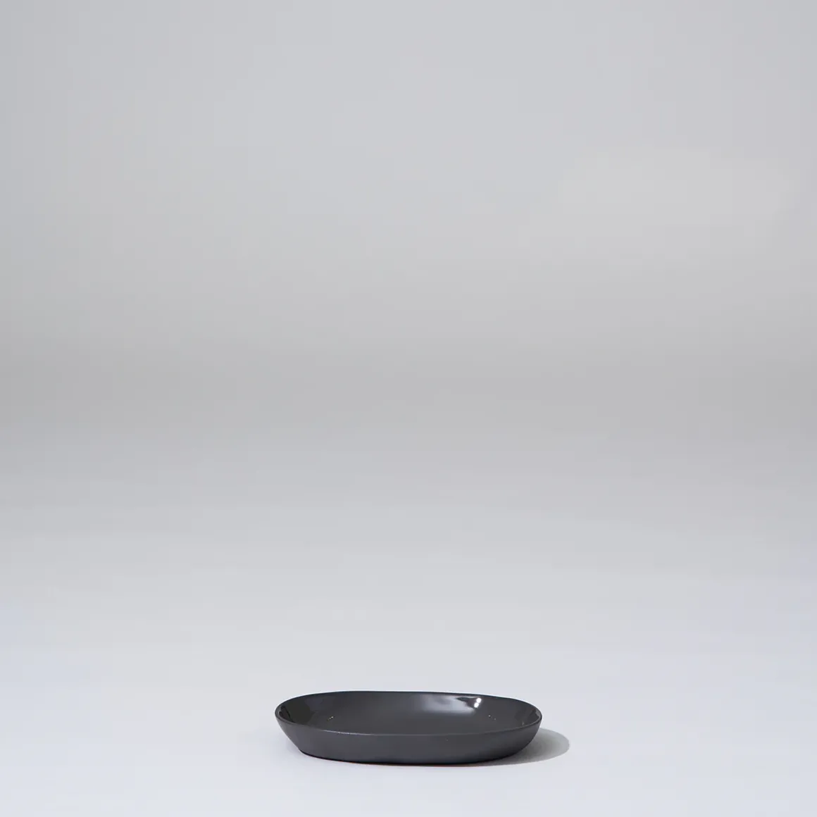 Hand cast ceramic plate with a subtle irregular shape.