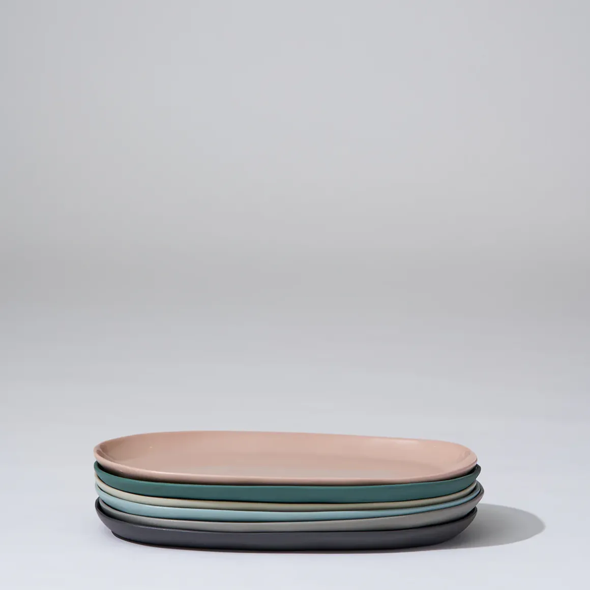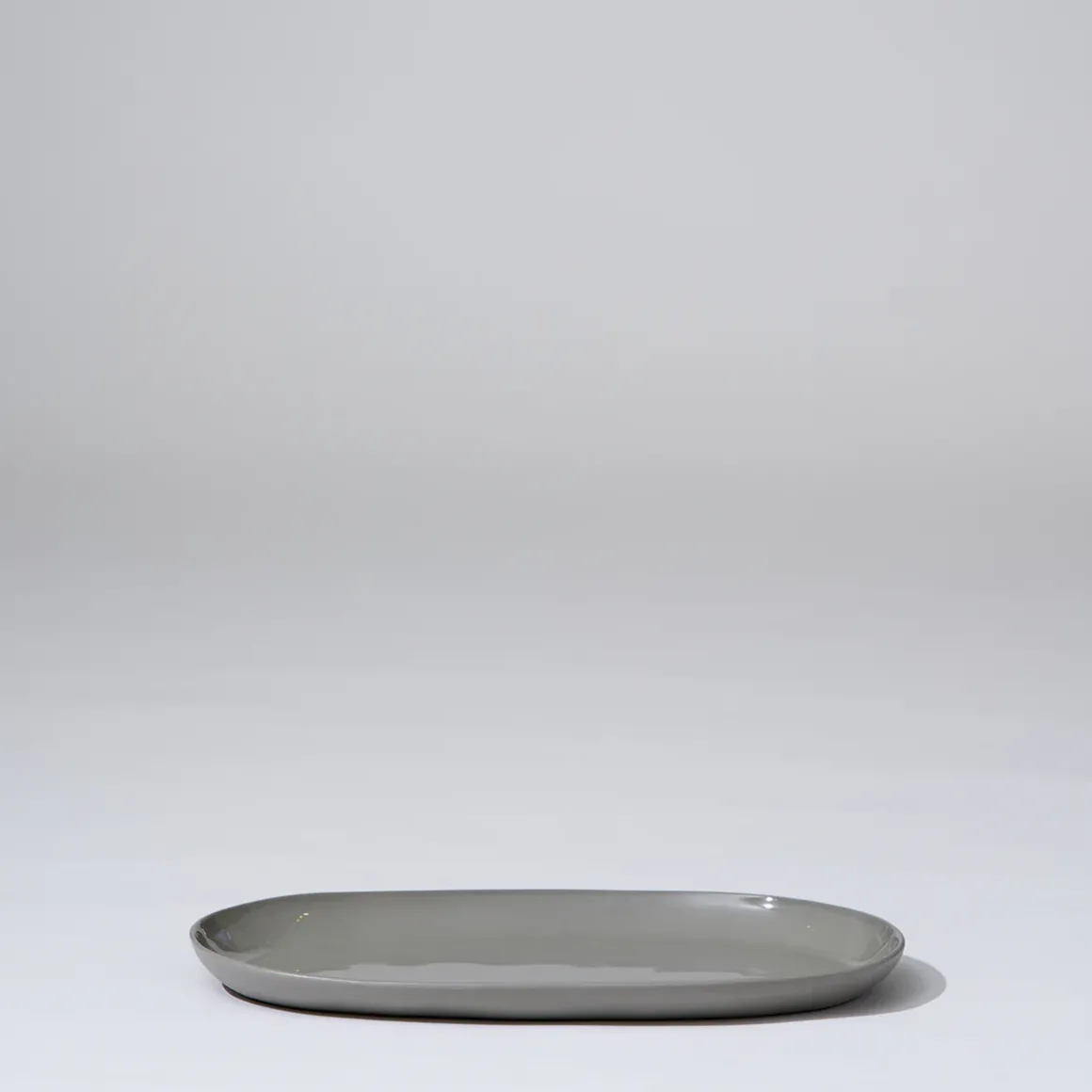 Hand cast ceramic plate with a subtle irregular shape.