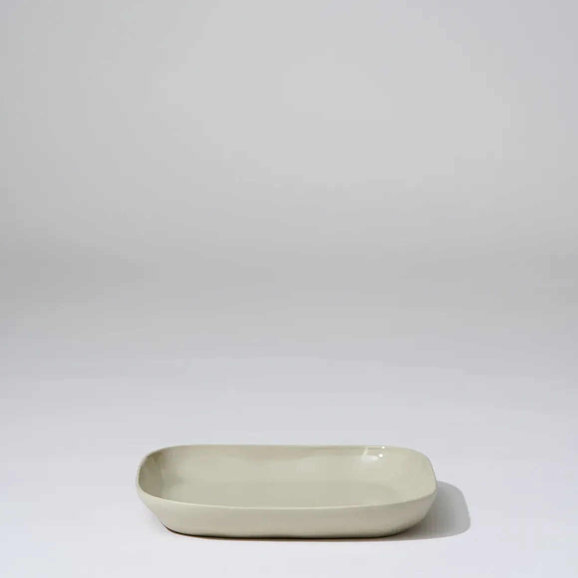 Hand cast ceramic platter with a subtle irregular shape.