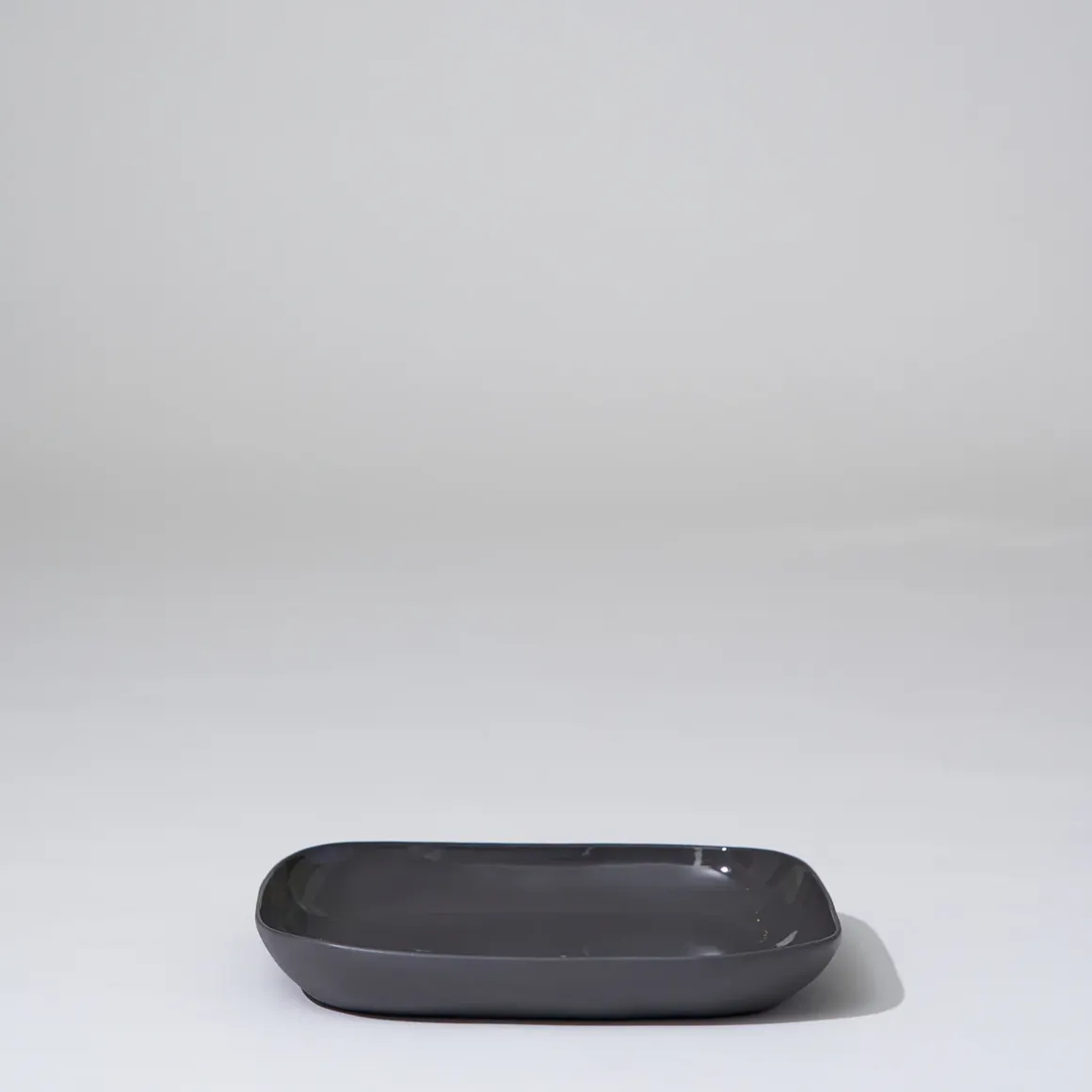Hand cast ceramic plate with a subtle irregular shape.