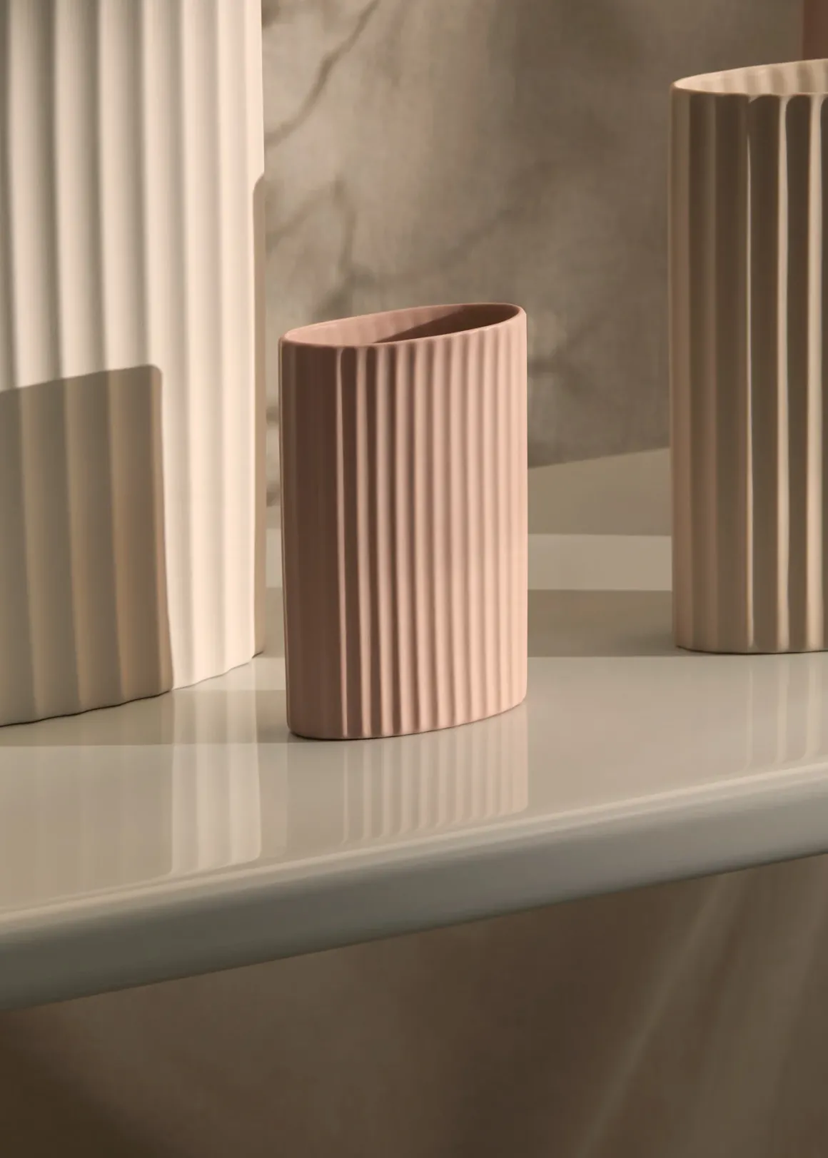Hand cast ripple oval shaped ceramic vase.