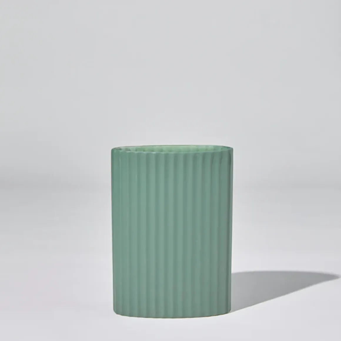 Hand cast ripple oval shaped ceramic vase.