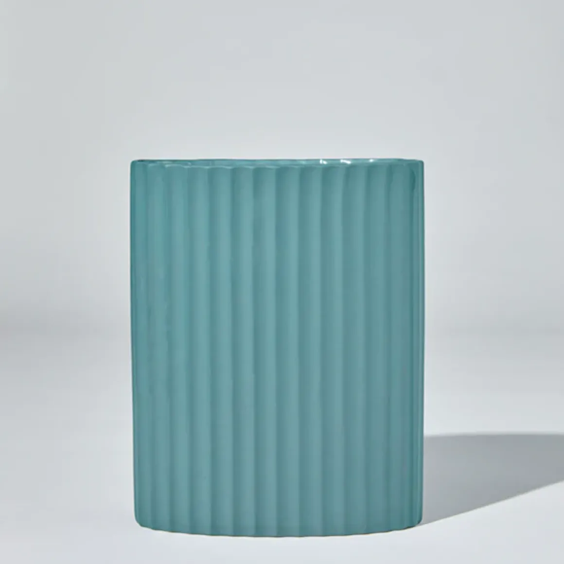 Hand cast ripple oval shaped ceramic vase.