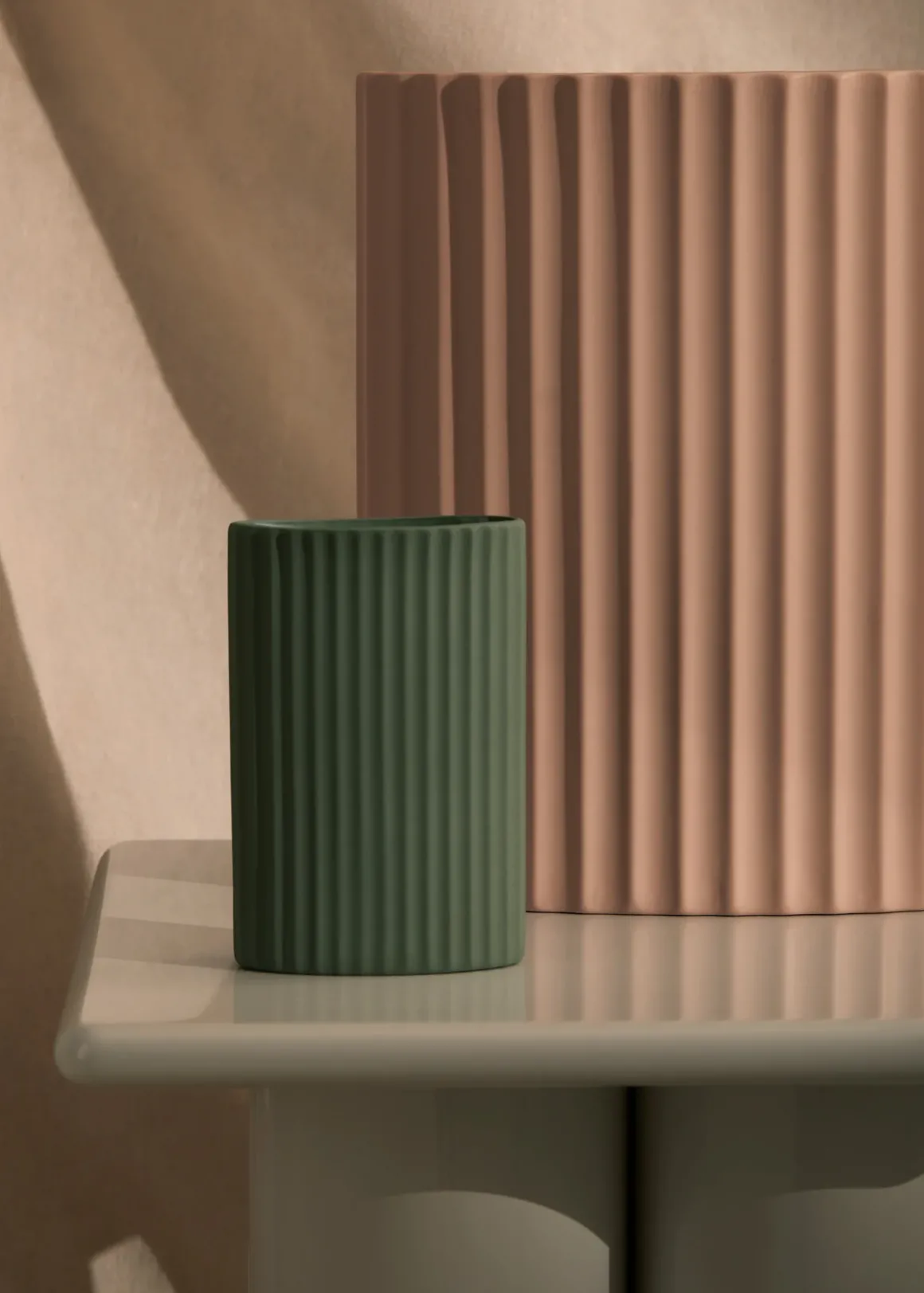 Hand cast ripple oval shaped ceramic vase