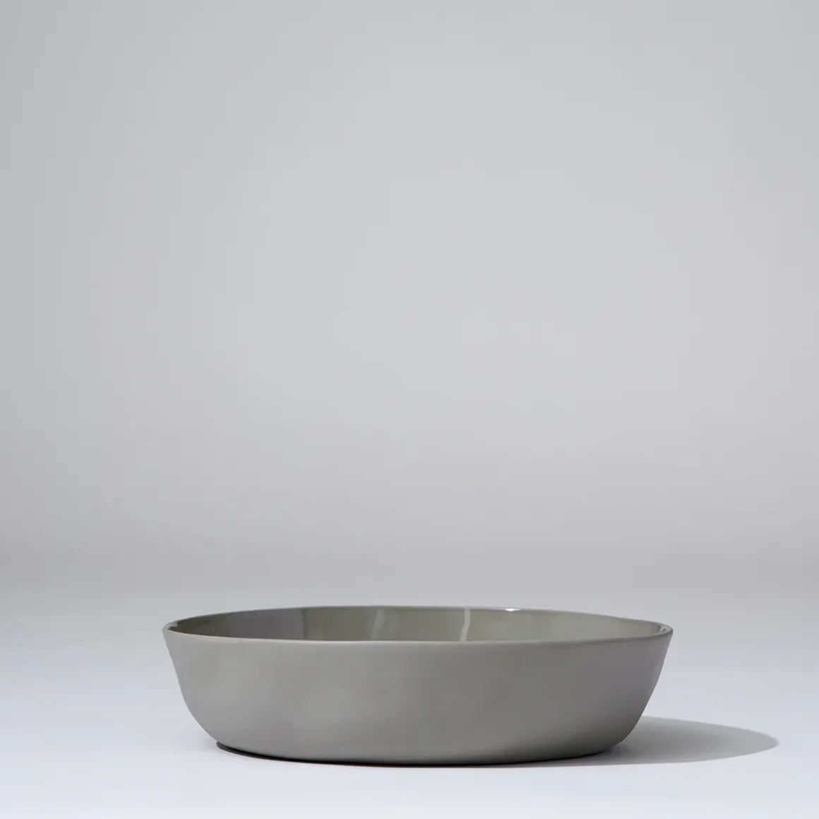 Hand cast ceramic bowl with a subtle irregular shape.
