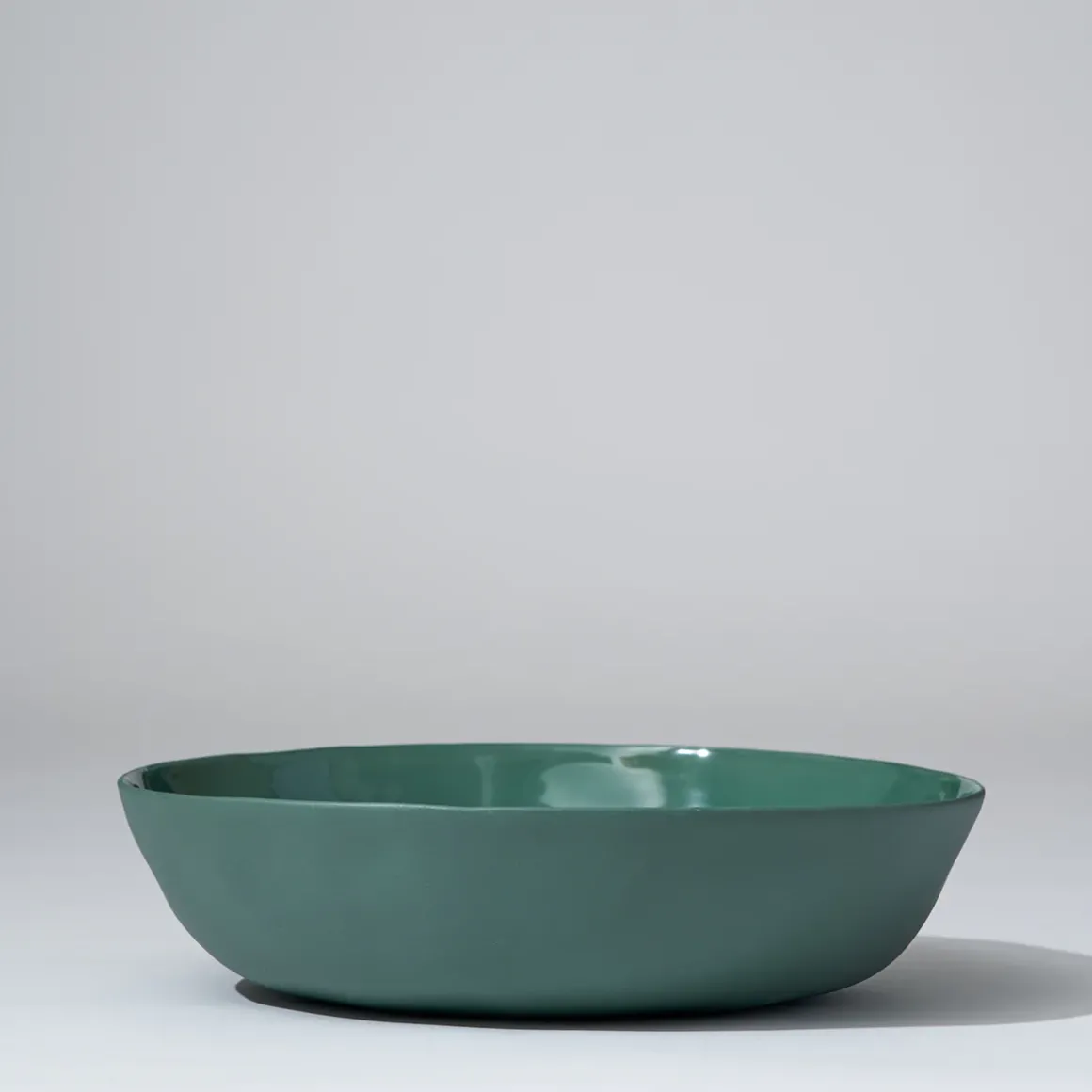 Hand cast ceramic bowl with a subtle irregular shape.