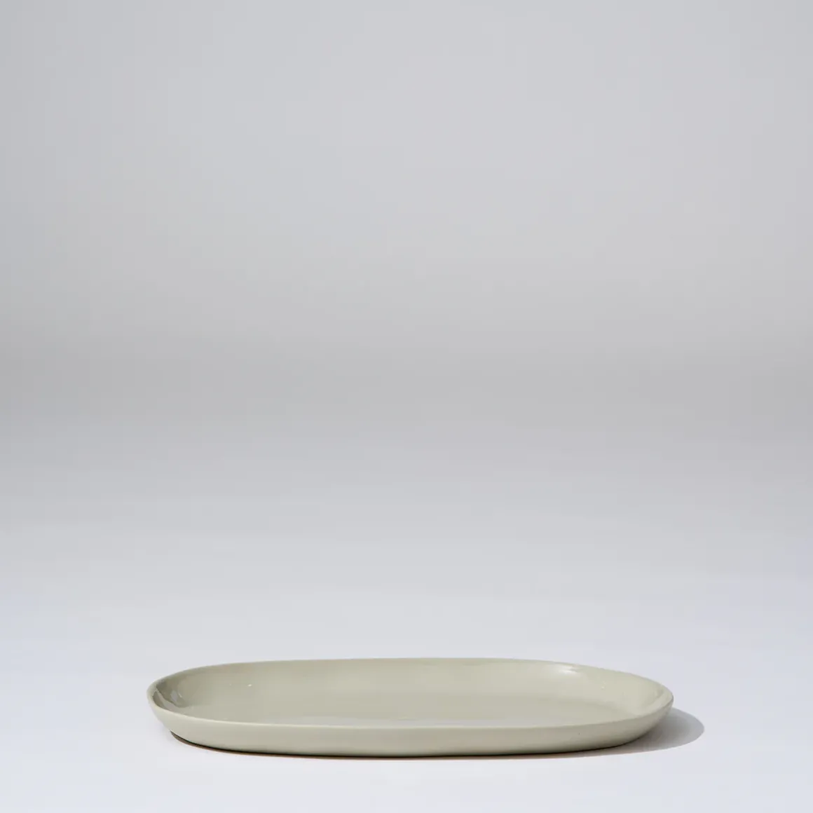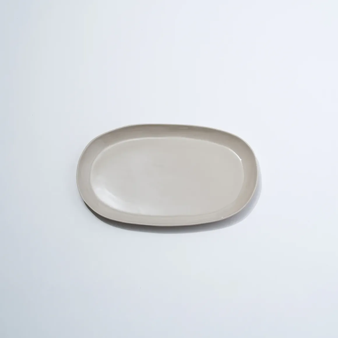 Hand cast ceramic plate with a subtle irregular shape.