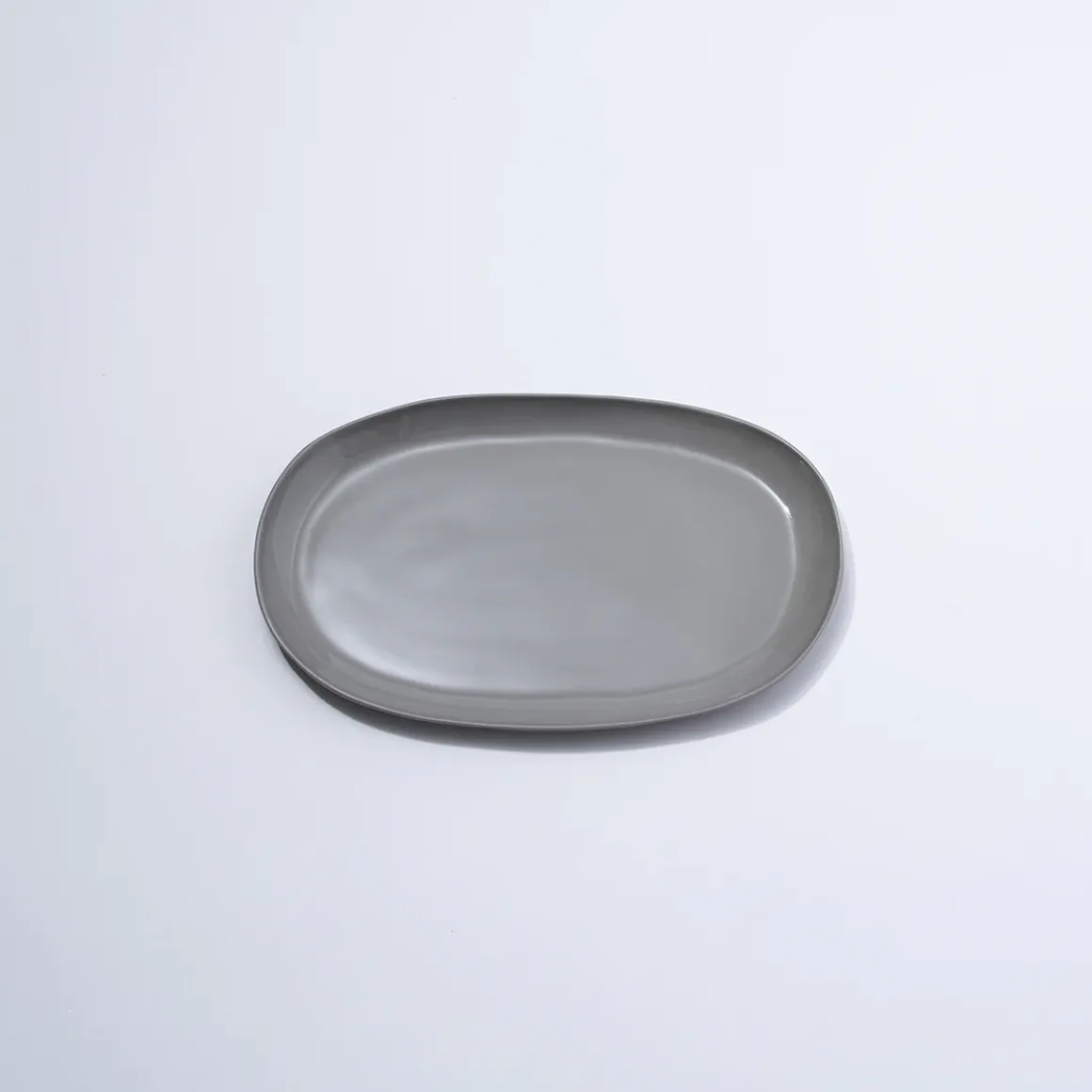 Hand cast ceramic plate with a subtle irregular shape.