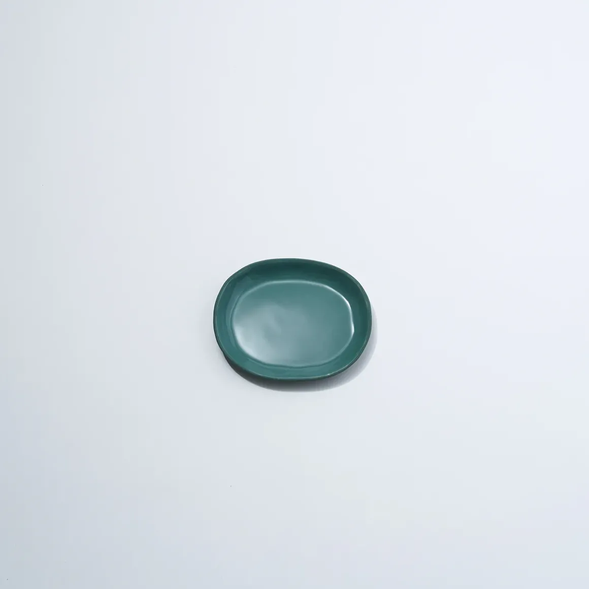Hand cast ceramic plate with a subtle irregular shape.