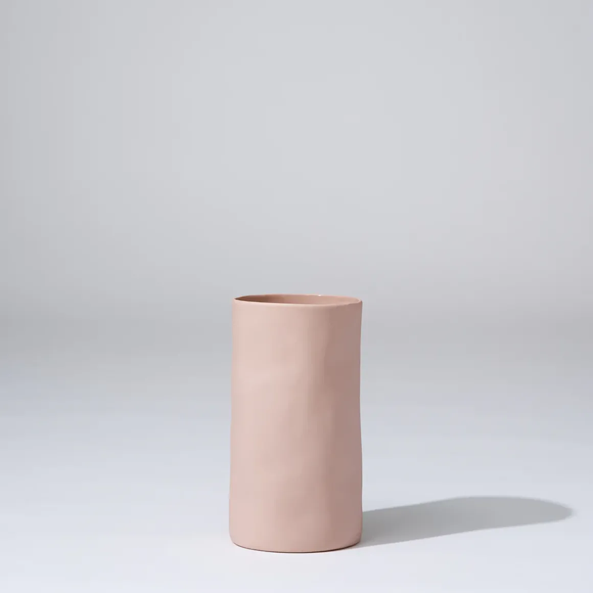 Hand cast cylindrical shaped ceramic vase