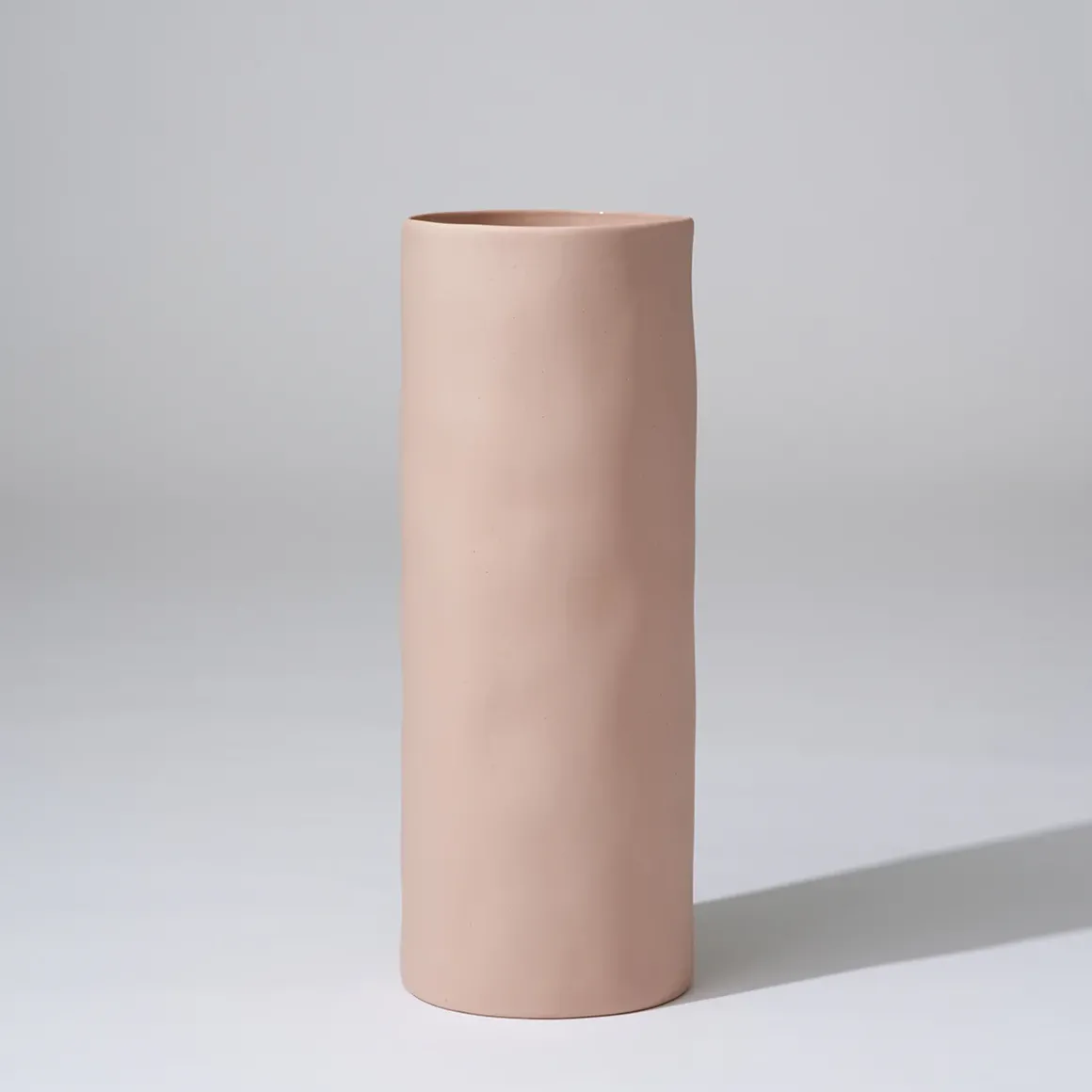 Hand cast cylindrical shaped ceramic vase