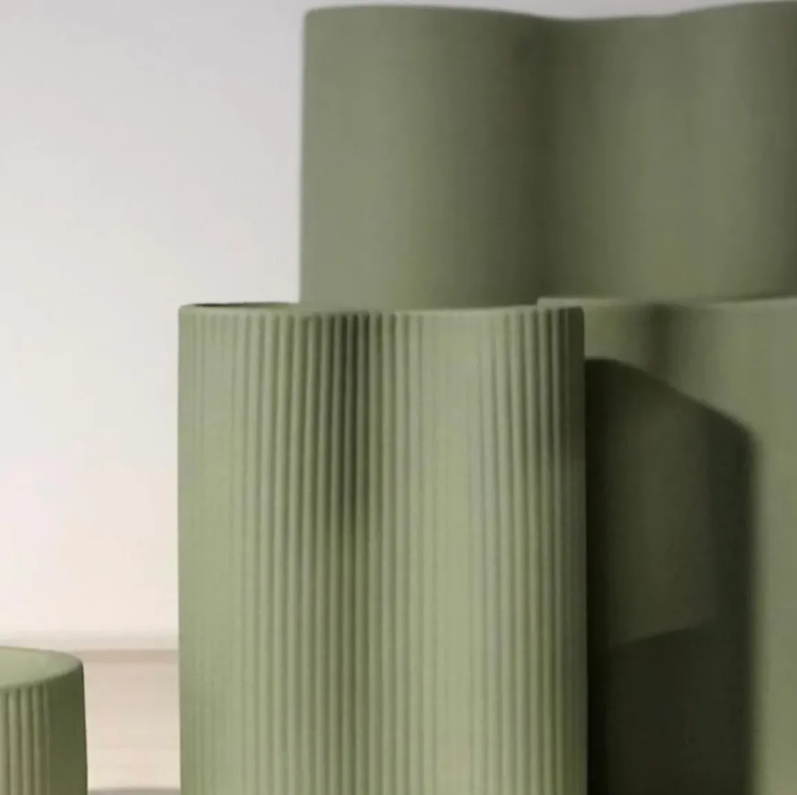 Hand cast ribbed porcelain vase