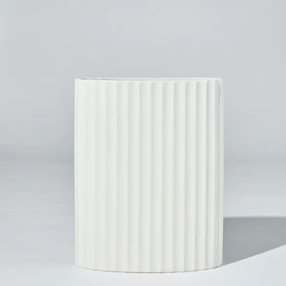 Hand cast ripple oval shaped ceramic vase.