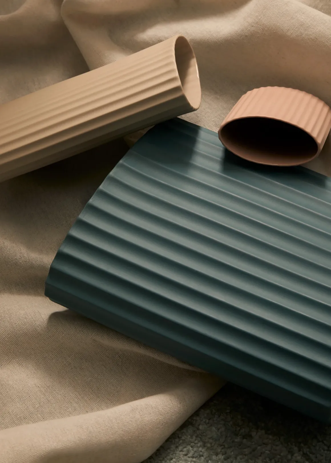 Hand cast ripple oval shaped ceramic vase.